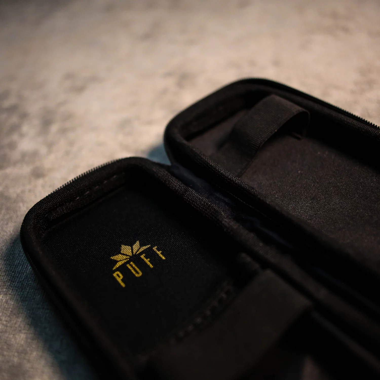 O Puff Case Slim apresenta um design moderno que combina estética minimalista com funcionalidade eficiente. Disponível em uma variedade de acabamentos, ele se adapta a qualquer estilo pessoal, garantindo que ou seu gosto será sempre representado com elegância. A imagem mostra um design exterior suave, com o logotipo Puff em destaque, refletindo um toque de classe e exclusividade.